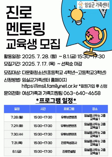 이번 사업은 빠르게 변화하는 노동시장 환경 속에서 청소년들이 자신의 적성과 역량을 발견하고, 실질적인 진로 계획을 수립할 수 있도록 돕는 것을 목표로 한다.