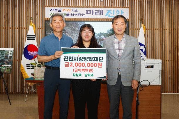 이날 기탁식에서 강성백 씨는 “어려운 환경 속에서도 꿈을 잃지 않고 학업에 정진하는 학생들에게 작은 보탬이 되고자 하는 마음으로 딸과 함께 마음을 모아 장학금을 기탁하게 됐다”며, “미래를 이끌어갈 진안의 인재들이 학업에 전념하여 훌륭하게 성장하길 바란다”고 기부 소감을 밝혔다.