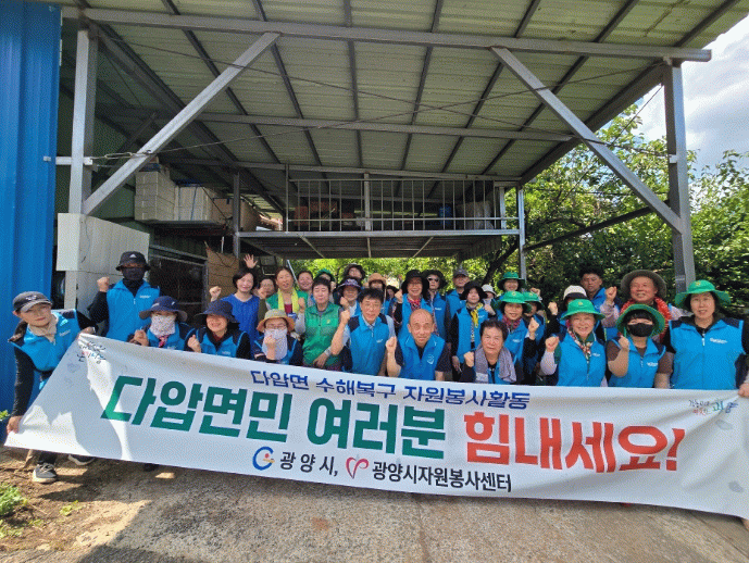 복구 활동에는 광양시새마을회, 우뢰징검다리봉사단, 동사모 등 광양시자원봉사센터 소속 자원봉사자 40여 명이 참여했다.
