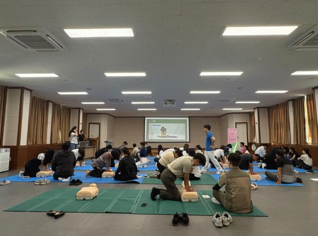 주요 내용은 ▲심폐소생술 및 응급처치 가이드라인 소개 ▲심정지 발생 시 대처법 ▲교육용 모형과 심장충격기를 활용한 실습 등으로 구성됐다.