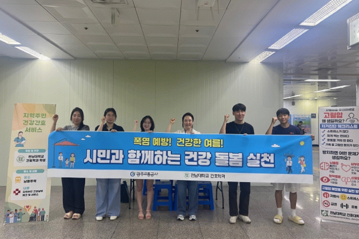 공사 조익문 사장은 “무더위 속에서도 주변 이웃들의 건강 관리를 위해 기꺼이 봉사 활동에 나서준 전남대 간호대학 관계자 분들께 감사드린다”라며, “앞으로도 도시철도가 지역민의 행복 공간으로 거듭나도록 최선을 다하겠다”라고 말했다.