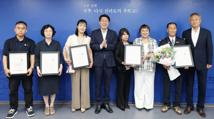사단법인 전주시자원봉사센터(이사장 최이천)는 23일 전주시청 3층 소회의실에서 ‘2025년 2분기 으뜸자원봉사자 시상식’을 열고, 평소 자원봉사를 통해 이웃사랑을 실천해온 일반인 4명과 청소년 1명 등 총 5명의 자원봉사자와 1개 단체에 전주시장 표창을 수여했다.