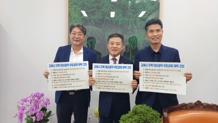 또, 지난 23일, 정 시장은 국정기획위원회 이춘석 경제2분과 위원장 면담을 통해 김제시 7대 지역 대선공약인 △김제 지능형(AI) 농업로봇 첨단과학기술단지, △새만금 국가정원, △국립 치유농업 혁신클러스터, △해양생명과학관, △새만금 사업을 차질 없이 추진(새만금 RE100 국가산업단지, 새만금 글로벌 푸드허브, 새만금 남북3축 도로), △종자산업 혁신클러스터, △지방도 702호선(새만금~김제~혁신도시) 국도 승격에 대해 국정과제에 반영해 줄 것을 건의했다.