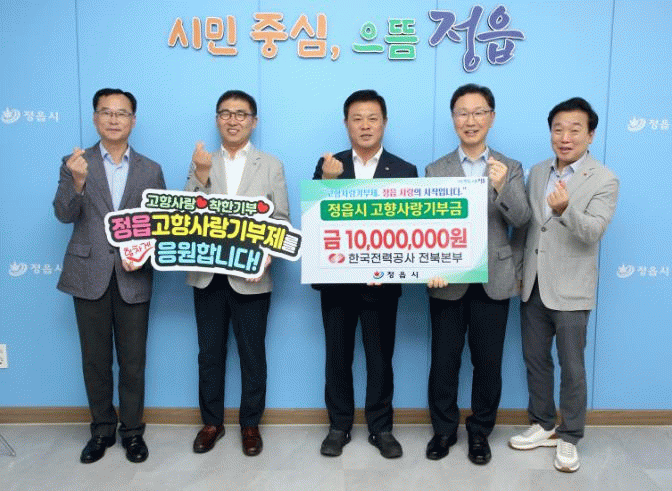 이번 기부는 정읍의 발전과 고향사랑기부제의 활성화를 응원하고자 전북본부 임직원들이 적극적으로 참여하며 이뤄졌다고 시는 설명했다.