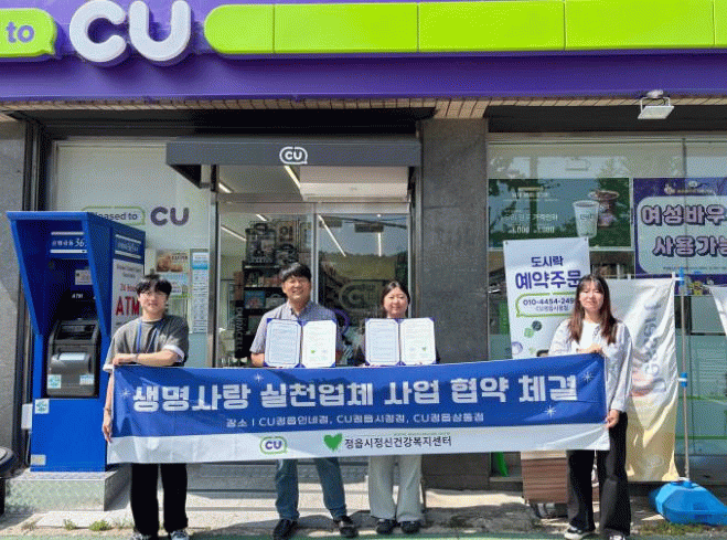 정읍시정신건강복지센터는 최근 CU정읍시청점, CU정읍인네점, CU정읍상동점 등 3개소와 생명사랑 실천업체 협약을 맺었다.