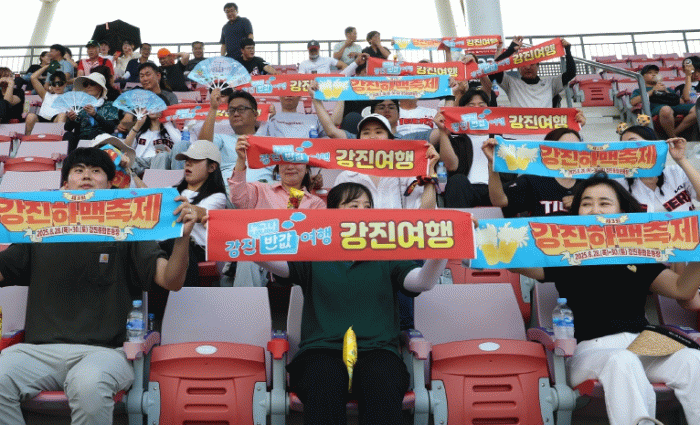 경기장을 찾은 강진군청 소속 공무원들은 경기장 안팎에서 적극 홍보했다. ‘무더운 여름엔 강진하맥축제!’ 등이 적힌 홍보 현수막을 직접 들고 관중과 함께 응원하며, 축제 홍보 전단지와 쿨패치 등 홍보물품을 배부하며 시민들의 관심을 끌었다.