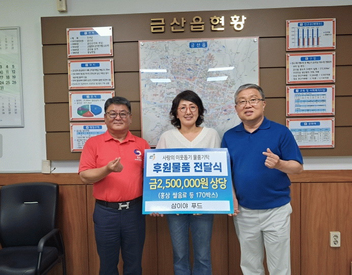 이기영 금산읍장은 “어려운 이웃을 위한 따뜻한 관심과 지원에 깊이 감사드린다”며 “기탁해 주신 물품은 꼭 필요한 분들에게 잘 전달하겠다”고 전했다.