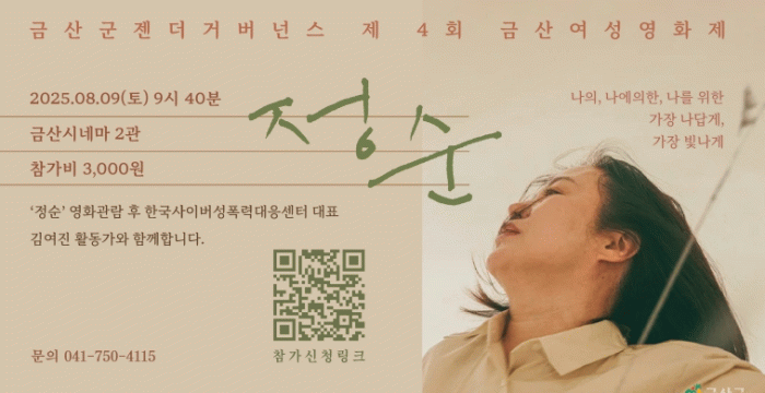 군 관계자는 “여성영화제를 통해 지역 내 성평등 문화가 더 확산하길 바란다”며 “여성의 목소리를 듣고 함께 고민하는 시간이 되길 기대한다”고 말했다.