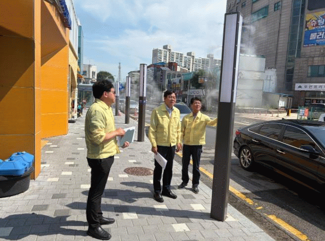 이번 현장행정은 ▲도시열섬현상 완화를 위한 살수차 운영 점검 ▲부안읍 농어촌버스정류장에 설치된 쿨링포그 운영 점검 ▲터미널 앞 미스트폴 시설 작동 상태 확인 ▲재해복구사업장 폭염 대비 근로자 보호조치 점검 ▲진서면 석포1마을 무더위쉼터 운영 점검 ▲해수욕장 수상안전점검 등 폭염 저감시설 운영 및 폭염취약계층 보호를 대상으로 진행됐다.