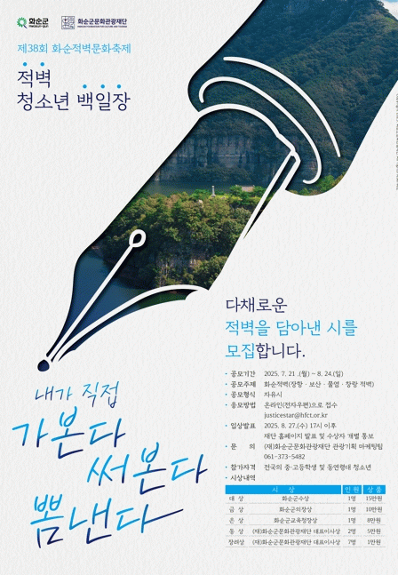 (재)화순군문화관광재단 구종천 대표이사는 “문학에 관심 있는 청소년들이 적벽의 역사적·문화적 가치를 글로 표현하는 뜻깊은 기회가 될 것”이라며, “전국의 역량 있는 청소년들의 많은 참여를 바란다”라고 전했다.