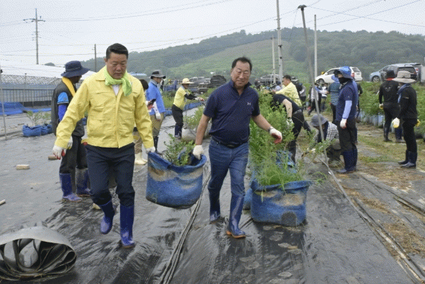 최영일 군수를 비롯한 공무원들은 피해 지역별로 분산 배치돼 ▲주택 내 가재도구 정리 ▲하우스 내부 토사 제거 ▲쓰레기 분리수거 등을 집중적으로 수행했다.