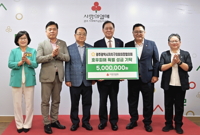 이번 성금은 의정 연수를 위한 예산을 전액 반납하고 이를 피해 복구 성금으로 전환한 것으로 광주광역시 5개 자치구의회 의장들로 구성된 ‘광주광역시자치구의회의장협의회’ 차원에서 마련됐다.
