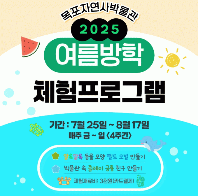체험은 7월 25일부터 8월 17일까지 매주 금·토·일요일, 하루 세 차례(13:30, 14:30, 15:30) 목포자연사박물관 디스커버리존에서 진행된다.