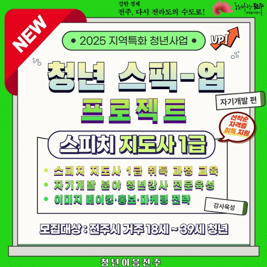 이번 공모 선정으로 시는 총 2500만 원의 사업비를 투입해 전주시 청년센터인 ‘청년이음전주’에서 ‘청년 스펙-업 프로젝트’를 운영할 계획이다.