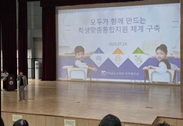 이날 연수에서는 ▲ 학생맞춤통합지원 체계 속 일반직 공무원의 역할 ▲ 학생 지원 우수 사례 공유가 이루어졌으며, 오는 2026년 전면 시행을 앞두고 학교 행정의 준비도를 높이는 계기가 됐다.