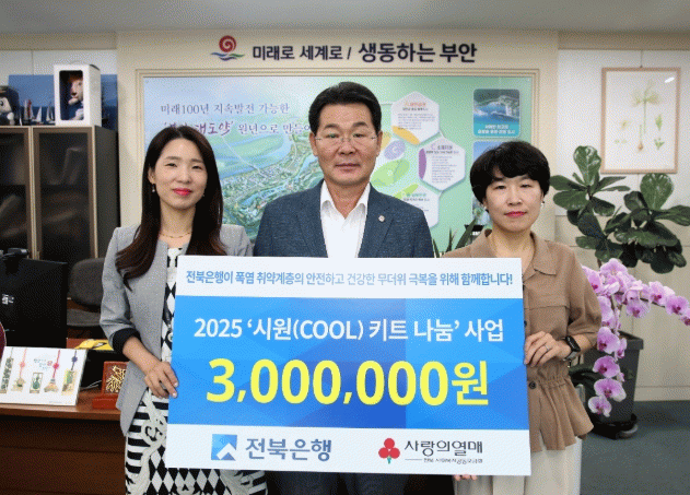 신정화 전북은행 부안지점장은 “폭염 일수가 증가하여 무더위에 지친 취약계층들이 조금이나마 시원하게 보내길 바라는 마음으로 시원키트를 지원하게 됐다”며, “앞으로도 지역주민을 위해 다양한 사회공헌활동을 이어나가겠다”고 밝혔다.