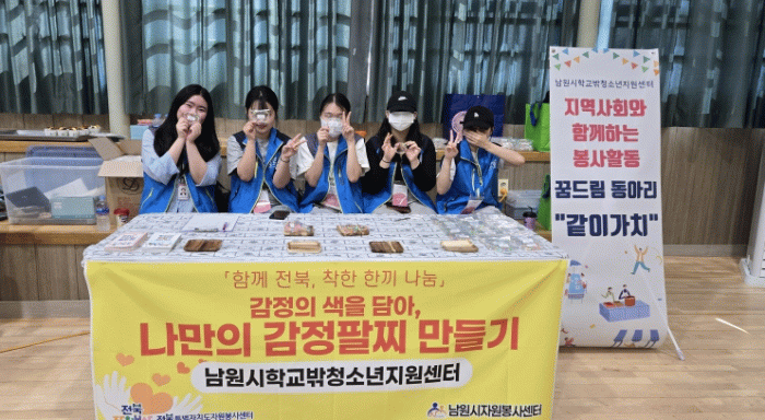 이번 봉사는 남원시학교밖청소년지원센터 내 봉사동아리 ‘같이가치’ 소속 4명의 학교 밖 청소년들이 주도했으며, 이 동아리는 올해로 5년째 남원시자원봉사센터와 협력하여 지역사회를 위한 다양한 자원봉사 활동을 이어오고 있다.
