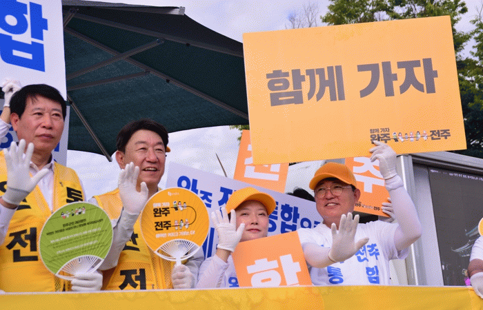 이날 캠페인에는 우범기 전주시장을 비롯한 전주시 공무원들과 행정, 복지·환경, 경제, 교통, 체육, 농업, 봉사 분야의 민간단체 회원들을 포함한 약 450명이 참여해 출근길 시민들에게 통합의 필요성과 기대효과를 설명했다.
