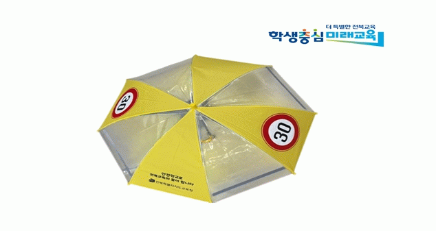 교통안전 우산은 자동차 불빛을 반사하는 야광 띠와 어린이 보호구역 제한속도 30km가 표시, 우천 또는 야간에 보행하는 어린이의 교통사고를 예방하는 효과가 크다.