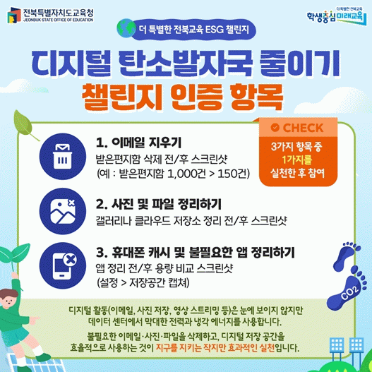 ‘더 특별한 전북교육 ESG 챌린지’ 세 번째는 ‘디지털 탄소발자국 줄이기’를 주제로, 에너지 절약에 초점을 맞췄다.