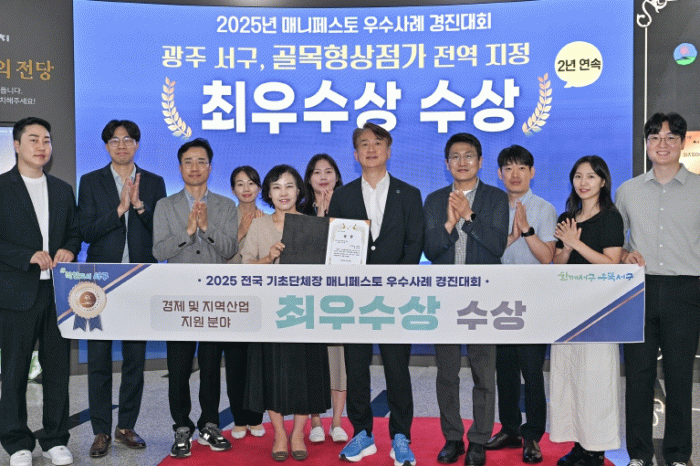 서구는 한국매니페스토실천본부와 경북연구원이 공동 주최한 ‘2025 전국 기초단체장 매니페스토 우수사례 경진대회’에서 골목형상점가 전역 지정 정책으로 경제 및 지역산업 지원 분야 최우수상을 수상했다고 28일 밝혔다.