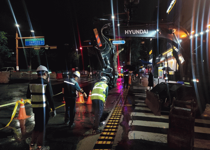다행히 지난 17일 호우특보가 발효되자 공사 현장의 근로자 914명, 장비 134대를 신속히 지상으로 대피, 인명 및 장비 피해는 발생하지 않았다.