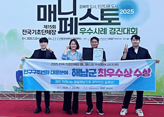 한편 해남군은 2019년부터 2021년까지 매니페스토 우수사례 경진대회 3년 연속 수상에 이어, 2024년과 2025년에도 연속 수상하며 매니페스토 공약 이행의 모범사례로 자리잡고 있다.