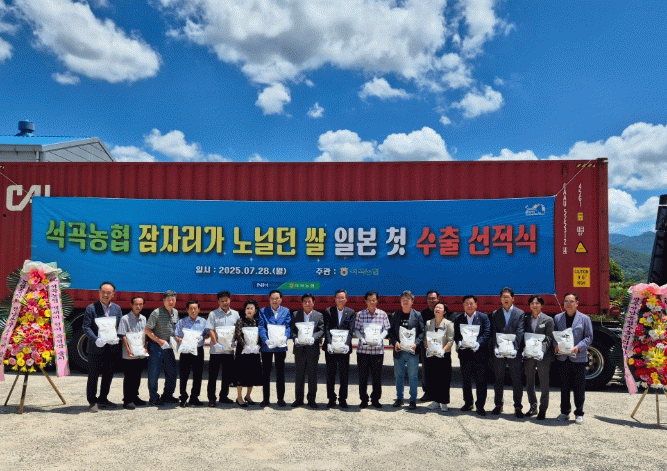 같은 날 열린 수출 선적식에서는 석곡농협의 브랜드 ‘잠자리가 노닐던 쌀’이라는 이름으로 일본 시장에 처음 선적됐다.