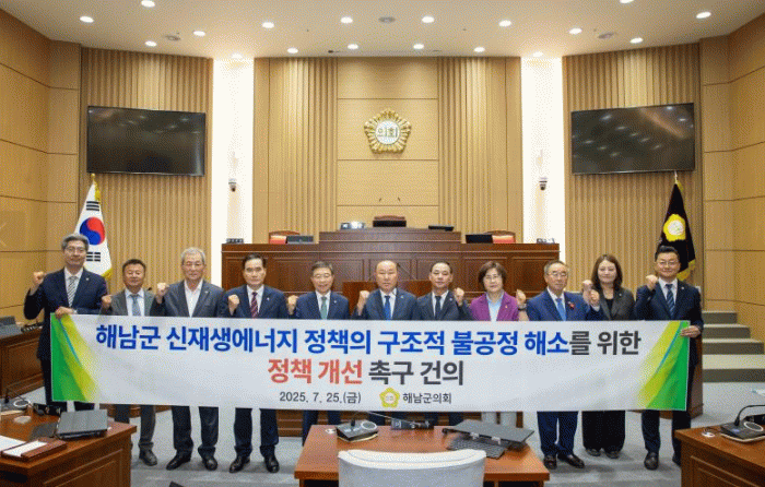 이어 ▲화원·남창·옥천영신변전소의 송전 용량을 해남지역에 우선 배정하도록 원칙을 명확히 하고, 특히 옥천영신변전소 용량을 강진에 배정하려는 계획을 즉각 철회할 것 ▲계통 접속을 기다리는 약 3천 건의 해남지역 소규모 주민 참여형 태양광 발전사업이 조속히 전력망에 연결될 수 있도록 송변전 설비를 신속히 확충하고, 기업의 지역 유치를 위한 제도적·재정적 지원책을 마련할 것 ▲향후 변전소 및 송전선로 건설 시 해남지역 전력을 우선 수용하는 원칙을 제도화하고, 송배전 인프라 설치에 따른 지역민의 사회적 부담에 상응하는 이익 환원 대책을 마련할 것 등을 산업통산자원부와 한국전력공사 등에 강력히 촉구하며 앞으로도 해남군민의 권익 보호를 위해 중앙정부 및 한국전력공사 등과 지속적인 협의와 정책 개선을 위한 노력을 이어갈 계획이라고 의지를 밝혔다.