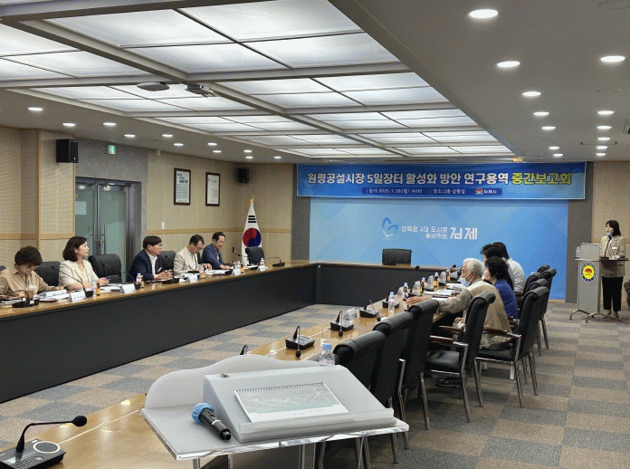 이날 중간보고회에는 김희옥 부시장, 새만금경제국장, 금산면장 등 시 관계 공무원 및 김제시의회 의원, 원평공설시장 상인회, 금산면 주민자치위원장, 이장협의회장, 용역사가 참석하여 용역 중간 보고와 주요 내용, 향후 일정 등을 공유했고 또한 질의응답 시간을 통해 다양한 의견을 청취했다.