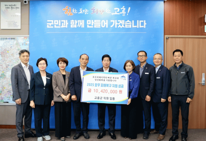 한편, 고흥군은 8월 17일까지 유관기관 및 단체, 지역 주민 등을 대상으로 호우피해 복구지원 특별모금을 전개해, 더 많은 나눔과 희망을 이어갈 계획이다.