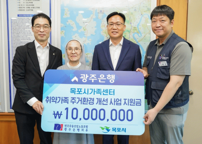 이번 기탁금은 전남사회복지공동모금회를 통해 목포시가족센터에 전달되어 ‘취약가족 주거환경개선 도배 지원사업’에 사용될 예정이다.