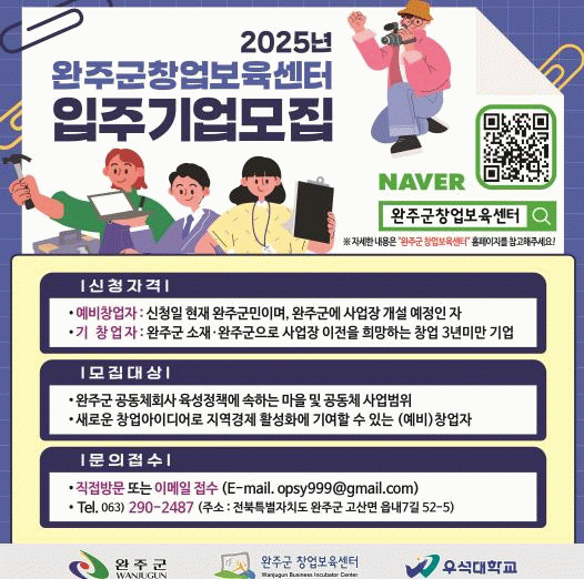 자세한 내용은 완주군 창업보육센터 홈페이지 또는 완주군 창업보육센터 전화 문의를 통해 확인할 수 있다.