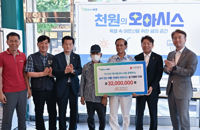 김이강 서구청장은 “폭염 속에도 생계를 위해 거리로 나설 수밖에 없는 어르신들이 마음 편히 쉬며 건강을 지킬 수 있도록 이번 사업을 준비했다”며 “앞으로도 생활현장을 중심으로 서구아너스의 선한 영향력이 더욱 확산될 수 있도록 민관협력을 강화해 나가겠다”고 밝혔다.