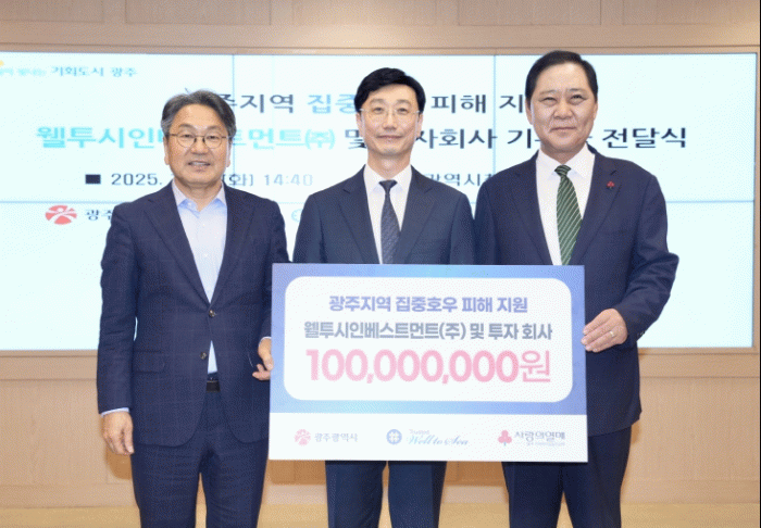 정승원 웰투시인베스트먼트 대표이사는 “호우피해를 입은 시민들의 아픔에 조금이나마 위로와 도움이 되고자 기부를 결정했다”며 “앞으로도 지역사회와 함께 상생할 수 있는 기업이 되도록 노력하겠다”고 밝혔다.