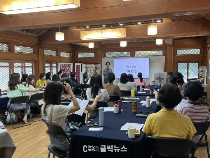 주요 프로그램은 신희흥 태이움직임교육연구소 대표의 ‘몸과 소리를 통한 감정 표현’, 김옥진 마음놀이터 대표의 ‘색채와 상징을 활용한 자아 탐색’, 김천응 문화예술교육 기획자의 ‘문화예술교육 사례 공유’, 정명돈 한국화가의 ‘전통 부채에 이야기를 시각적으로 담아내는 예술적 소통’으로 구성된다. 자연 친화적 공간인 전통문화관에서 진행되는 이번 연수는 정서적 몰입과 교사 간 소통을 강화할 예정이다.