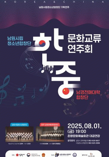 한편 남원시립청소년합창단은 2006년 ‘꿈을 향한 천사들의 합창’이라는 구호 아래 창단된 이후 정기연주회, 지역 축제, 국제 교류공연 등 다양한 활동을 통해 지역 문화예술 발전에 기여해오고 있다.