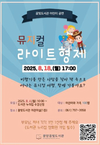 공연 관람 신청은 오는 8월 4일 오전 10시부터 광양시립도서관 누리집을 통해 가능하다.