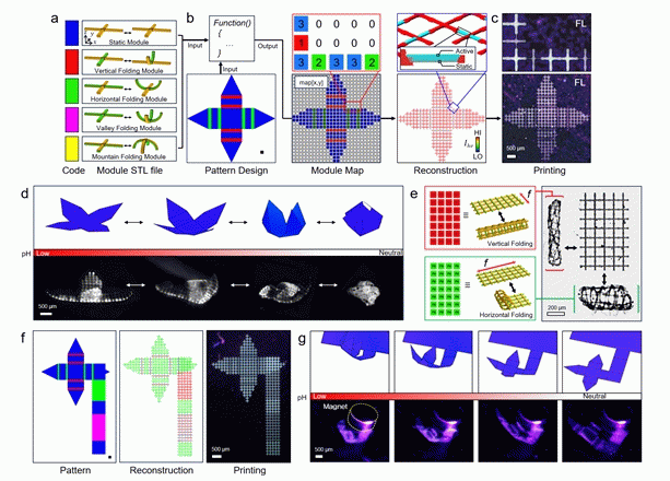 또한, 복잡한 형태의 4D 프린팅 설계 도면을 자동으로 생성하는 Rule-based AI 프레임워크를 개발해 다양한 형태의 정밀한 형상 변형 마이크로구조체의 제작이 가능함을 보였다.
