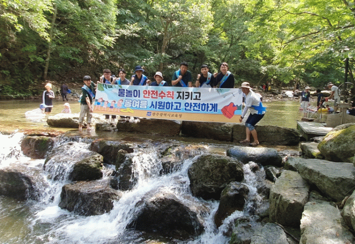 시교육청 직원들은 광주시민들이 가족단위로 많이 찾는 강천사를 찾아 ▲물놀이 전 준비 요령 ▲계곡 입수 시 유의사항 ▲사고 발생 시 행동요령 등을 안내했다. 또 안전 홍보물품을 배부하고, 계곡 주변 환경 정화 활동도 함께 진행했다.