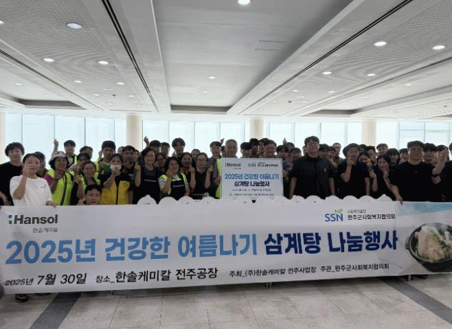 유영찬 한솔케미칼 전주공장장은 “여름철을 맞아 어려운 이웃들에게 삼계탕을 나누며, 기업의 사회적 책임을 실천하는 ESG 경영을 이어가고자 한다”고 밝혔다.