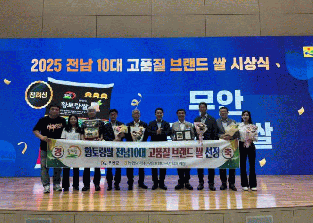 이번 시상식에서 무안 ‘황토랑쌀’은 상패와 함께 인센티브 1,000만원을 지급받았으며, 수상자와 참석자들은 ‘10대 쌀 채우기’ 퍼포먼스를 함께하며 도내 우수 쌀 브랜드의 성과를 공유하고 축하하는 자리를 가졌다.