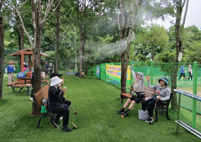 시체육회는 광산구 첨단 대상파크골프장에 쿨링포그(물안개), 이동식 스프링클러, 냉방 휴게실 등을 설치해 폭염 속에서도 이용객들이 안전하게 즐길 수 있게 환경 개선에 나섰다고 31일 밝혔다.