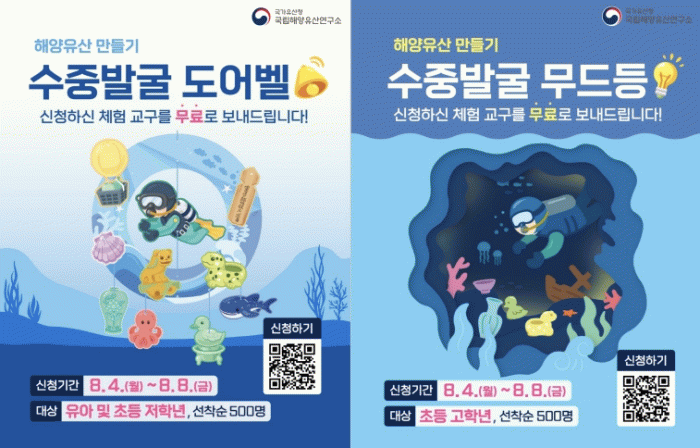 이번 체험교구는 연령에 따라 난이도를 구분하여 ▲ 유아·초등 저학년용 ‘수중발굴 도어벨 만들기’, ▲ 초등 고학년용 ‘수중발굴 무드등 만들기’로 구성된다. 각 교구에는 자유롭게 색칠할 수 있는 채색 엽서가 함께 제공되며, 엽서에 인쇄된 정보 무늬(QR코드)를 통해 만들기 영상을 시청할 수 있어 누구나 집에서도 쉽게 체험할 수 있다.