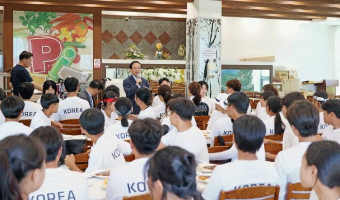 이날 오찬 메뉴로는 임실 대표 상품인 임실N치즈가 듬뿍 들어간 치즈피자와 치즈돈가스를 준비해 선수들에게 맛과 영양을 동시에 선사했다.