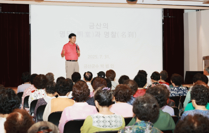 이번 강연은 ‘양생’ 금산행복대학 교육과정의 일환으로 지역 어르신들에게 금산의 풍수적 가치와 역사적 명소를 알리고 고장에 대한 자긍심을 높이기 위한 취지로 마련됐다.