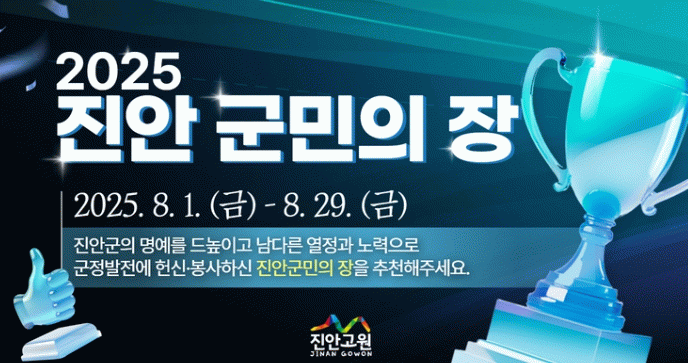 접수가 완료되면 후보자의 공적사항을 면밀히 조사하고 9월 중 ‘진안군 군민의 장 조례’에 따라 심사위원회를 열어 최종 선발한다.