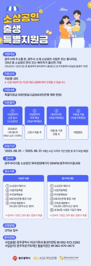 이영동 여성가족국장은 “광주시와 KB금융그룹이 함께 임신·출산 소상공인 가정의 새 가족을 맞이하는 기쁨을 나누고자 한다”며 “이번 사업을 통해 소상공인들의 경제적 부담을 조금이나마 덜어드리고, 지역사회의 따뜻한 관심 속에서 아이를 맞이할 수 있도록 최선을 다하겠다”고 말했다.