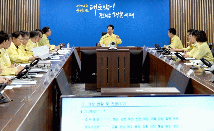 김영록 지사는 이날 회의를 마치고 곧바로 무안과 함평지역 저지대 피해 현장을 방문해 이재민들의 피해상황을 살피고, 즉각적이고 실질적인 대응책 추진을 현장에서 지휘했다.