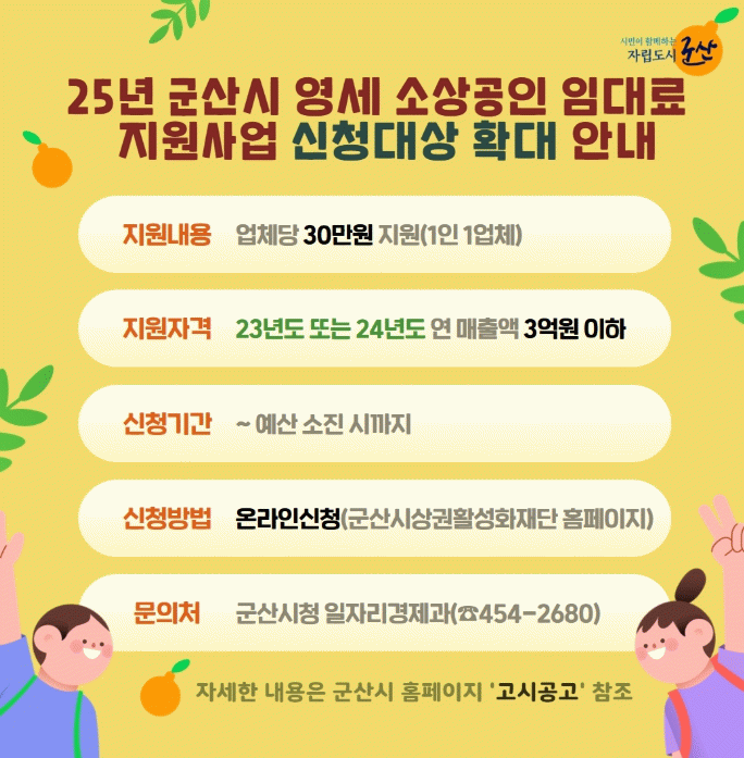 더 자세한 사항은 군산시청 누리집 고시·공고란을 참고하거나 군산시 일자리경제과로 문의하면 된다.